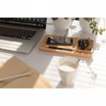The perfect item for on your desk or table! This bamboo desk organizer allows you to keep your desk tidy and charge your phone without any wires. Including 150 cm micro USB cable to connect the charger to a power source. 5W wireless charging. Input DC 5V/1.5A. Output: 5V/800mA.
