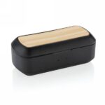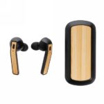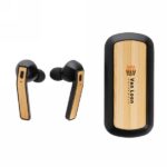 Let the music flow with these true wireless earbuds in charging case. The bamboo earbuds have a 35 mAh battery and can be re-charged in the 500 mAh charging case within 1 hour. With auto pairing function so easy to pair to your mobile device. Playing time on medium volume about 3 hours. With BT 5.0 for optimal connection. Operating distance up to 10 metres. With pick up and mic. Including 3 size silicone ear tips. Bamboo and ABS material.