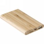 Bamboo Power bank 4000 mAh, 4 diodes indicating power level, 2 USB outputs, input DC 5V/1A, output DC 5V/1A, 3,7V, USB type C cable included