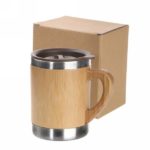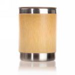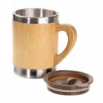 Travel mug 290 ml with handle and bamboo parts, stainless steel inside, plastic lid, thermal insulation scale: 1