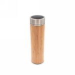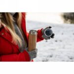 Bamboo vacuum flask 500 ml with sieve stopping dregs, leakproof lid with digital beverage temperature display, double vacuum walled, stainless steel inside and outside, thermal insulation scale: 3 +leakproof