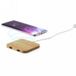 Bamboo wireless charger 5W, works with mobile phones with inductive charging function, 2 USB outputs DC 5V/2.1A, micro USB cable included