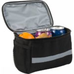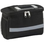 Bicycle zipped cooler bag with PVC pocket on top, reflective strap, mesh pockets on both sides