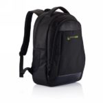1680D and jacquard backpack. Zippered front pocket with organizer. Zippered main compartment with 15,6” padded laptop pocket. Reflective piping. Two side mesh pockets. PVC free.