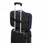 1680D metal look wheels, aluminium trolley handle, padded 15,6” laptop compartment, extendable waist, front pocket with organizer, lined handle and (removable) shoulder straps.