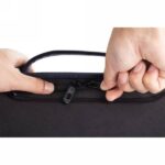 Anti-theft backpack Bobby Bizz, bag, made of high quality polyester, reflective stripes, stiffened compartments inside for 15.6″ laptop and 10′ tablet, special metal construction protects objects inside and maintains shape of backpack, backpack can be used also as a bag, integrated padlock allows to attach backpack to fixed object, luggage strap included, registered design®