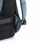 The Bobby Hero line is our new generation of anti-theft backpacks. This new model will help you to move safe, carefree and organized. Key features such as cut-proof protection, hidden zipper closures & pockets will keep your belongings safe during your commutes. Bobby is also the most convenient backpack with features such as an integrated USB charging port, water-repellent fabric, illuminating safety strips and a luggage strap. On the inside there are padded compartments for a 15,6” laptop, tablet up to 12,9” and all your other belongings. The backpack is made from rPET, recycled PET bottles. Registered design®