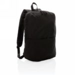 This casual backpack is a simplistic and practical carry-all for everyday use. The backpack is made from durable polyester fabric and features a streamlined design. This backpack has a roomy main compartment to hold your daily essentials as well as a separate front zipper pocket to hold other small personal items and two side pockets for your water bottle and umbrella. PVC free.