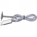 Charging and synchronization cable with 3 plugs: USB, USB type C and 2 in 1 plug (micro USB and compatible with iOS devices), phone stand