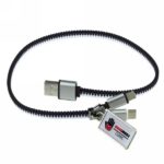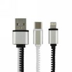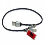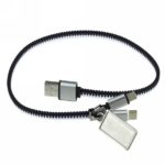 Charging cable “zipper” with 3 plugs: USB, USB type C and 2 in 1 plug (micro USB and compatible with iOS devices), USB type C with synchronization function, 5W charging power, metal badge for doming included