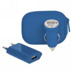 Portable set in case, USB wall charger (input 100-240V, 50/60HZ ±0.3A, output 5V/1A) and USB car charger (input 12-24V, output 5V/1A)