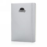 Ruled A5 hardcover standard notebook with elastic closure and bookmark ribbon. 144 pages of 70g/m2 inside. Cream coloured pages.