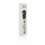 Multifunction tool that includes a COB light, safety hammer, belt cutter and magnet. The light can be switched into red emergency mode to attach to your car with the built-in magnet. The safety hammer and window breaker can be used to escape in case of an unfortunate situation. Made out of silicon and aluminium material. Includes 4 cell batteries for direct usage.