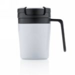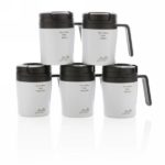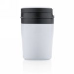Less is more. Being 8cm high this is the perfect double wall mug for your coffee machine. PP inner. Great for Ristretto, Espresso and Lungo coffee. Nice handle for 1 hand drinking. Easy twist spill proof lid. Hand washable only. Content 160ml. Registered design®