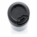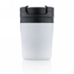 Less is more. Being 8cm high this is the perfect double wall mug for your coffee machine. PP inner. Easy twist spill proof lid. Great for Ristretto, Espresso and Lungo coffee. Hand washable only. Content 160ml. Registered design®