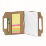 Conference folder (approx. A5) with notebook (70 lined sheets) and handle, 25 sticky notes 10 x 7,5 cm, 125 mini sticky notes 7,5 x 1,5 cm, recycled cardboard ball pen included