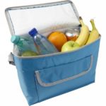 Rectangular cooler bag for 16 cans (0,33 l), front pocket with flap and carry strap