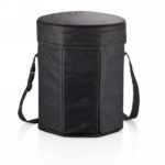 600D polyester in black with PE coating, 30cm diameter, foldable. Usable as cooler and seat.