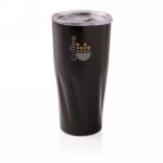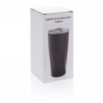 This 304 stainless steel tumbler has a double-wall vacuum construction with copper insulation which means it keeps drinks hot for 8 hours and cold for 24 hours. The construction prevents condensation on the outside of the tumbler. Easy sipping, push-on lid with slide closure. Content 480 ml. Spill proof & handwash only. Presented in an XD Collection gift box.
