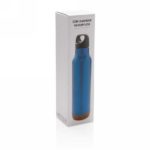 Vacuum insulated leak proof flask with durable 304 SS inside and 201 outside. Unique cork detail on the bottom. Keeps your drinks hot for up to 5h and cold up to 15h. Content: 580 ml.