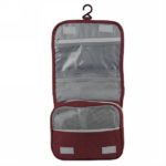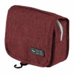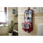Cosmetic bag with numerous compartments, zipped main compartment, 1 mesh pocket, front and transparent pocket with zipper, hook for hanging included
