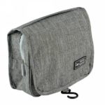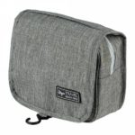 Cosmetic bag with numerous compartments, zipped main compartment, 1 mesh pocket, front and transparent pocket with zipper, hook for hanging included