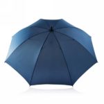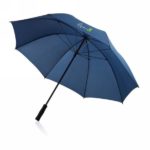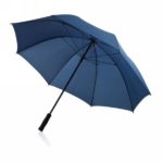 Manual storm umbrella in 190T polyester with fibreglass shaft and ribs, PP tips and top and a straight EVA handle.