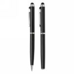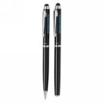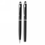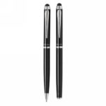 Stylus ballpoint pen and stylus rollerball gift set. Exclusive design with beautiful lined barrel pattern and a dedicated place for printing your decoration. Incl. Swiss Peak Tube giftbox.