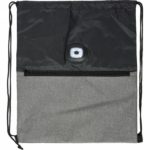 Drawstring bag with light, zipped front pocket