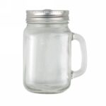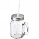 Drinking jar 480 ml with straw, handle and silver coloured lid with hole for straw