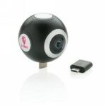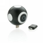 Make stunning 360 degree HD photos and videos with this 360 camera that can easily be placed on any Android tablet or phone. The free APP allows you to stream your 360 degree content live on social media like Facebook, Twitter, Instagram or YouTube. You can also edit your photos and videos and you can even create your own VR movies. A micro USB connector is included which can be replaced for a type C connector for the latest generation Android devices. Resolution: video 2K (2048×1024) Pictures: 3K (3508×1504)
