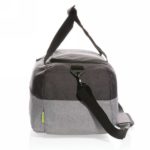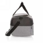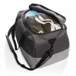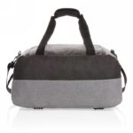 Perfect as a carry-on bag or to pack for an overnight trip. This weekend bag is made of reused plastic bottles, so not only stylish in two tone grey but also sustainable. The bag features a U-shaped top opening for all your gear, one large front pocket for quick access to your belongings and a RFID pocket for your passport and wallet. A top handle and a removable shoulder strap provide versatile carrying options. PVC free.