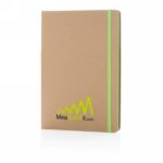 Recycled craft cover notebook with recycled paper. 72 sheets/144 pages of 70 g/m2. Cream coloured paper. Elastic band and bookmark ribbon._x000D_