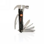 Ultra-strong hammer tool with 10 functions. Packed in luxury gift box including high quality 1680D pouch. Aluminium material body and stainless steel tools. Tools included: Hammer, combination pliers, wire cutters, nail claw, knife, saw, phillips screwdriver, bottle opener, flat screwdriver, file.