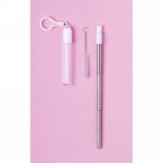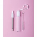 Extendable stainless steel drinking straw with silicone mouthpiece, reusable, cleaner and case with carabiner clip included