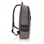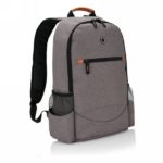 1680D and jacquard backpack. Zippered front pocket with organizer. Zippered main compartment with 15,6” padded laptop pocket. Reflective piping. Two side mesh pockets. PVC free.