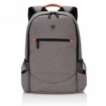 300D polyester laptop backpack with 1 main compartment which has a separate tablet pocket and an organizer. PVC free.