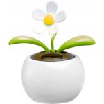 Solar flower pot, flower and leaves move when solar panels are exposed to sunlight, in white gift box