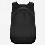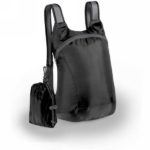 Foldable backpack with zipped main compartment, adjustable shoulder straps, carabiner