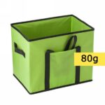Foldable car organizer with 2 long and 2 short carry handles, front pocket and matching cardboard bottom