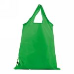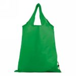 Foldable shopping bag, folded into corner with string and plastic stopper