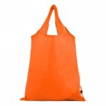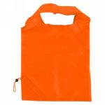 Foldable shopping bag, folded into corner with string and plastic stopper