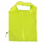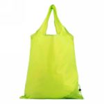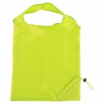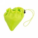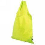 Foldable shopping bag, folded into corner with string and plastic stopper