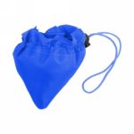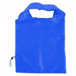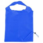 Foldable shopping bag, folded into corner with string and plastic stopper