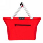 Foldable shopping basket with zipped side pocket and aluminium frame
