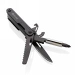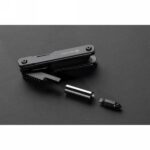 Minimal design but highly functional pocket tool. The body is made from from luxury black aluminum and the tools are made from premium grade 420 stainless steel. The long lasting tool includes: Knife, bottle opener, Box cutter, screwdriver with double bit set ( S2 5, S2 PH2) , saw and slotted screwdriver. Packed in luxury gift box.