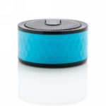 Trendy 3W wireless speaker with geometric cut pattern ABS case. The top grill has a special personalisation area for optimal visibility of the logo. The bottom has a silicon strip for optimal sound quality and stability. The 300 mAh battery allows you to play up to 4 hours of your favourite music and is completely recharged within 1 hour. Operating distance up to 10 metres. Wireless BT 2.1 connection. Registered design®
