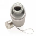 For those who prefer drinking from glass instead of stainless steel, this 500ml glass bottle with removable full colour neoprene sleeve is perfect for being on the go. The braided rope carry strap allows easy carrying and the neoprene sleeve protects your bottle. Leakproof and with stainless steel screw lid. Cold water only. BPA free.