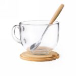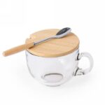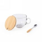 Glass mug 420 ml with bamboo lid and stainless steel spoon with wooden handle