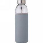 Glass sports bottle 500 ml with pouch, metal lid with handle, only for cold drinks